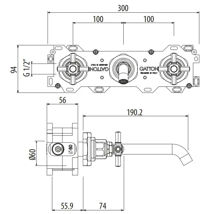 Gattoni TRD Смеситель для раковины, настенный, ручки London, цвет: золото 24К