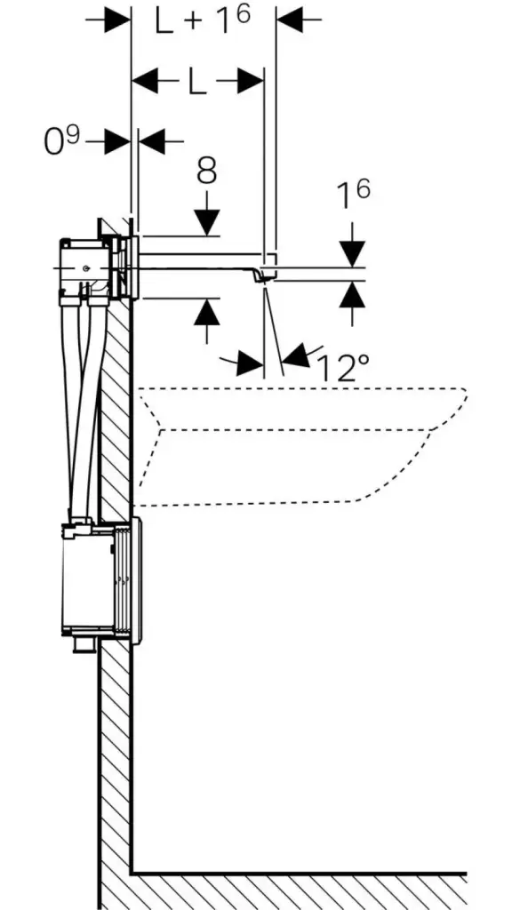 Geberit Brenta Смеситель для раковины настенный 22 см, цвет: хром 116.292.21.1