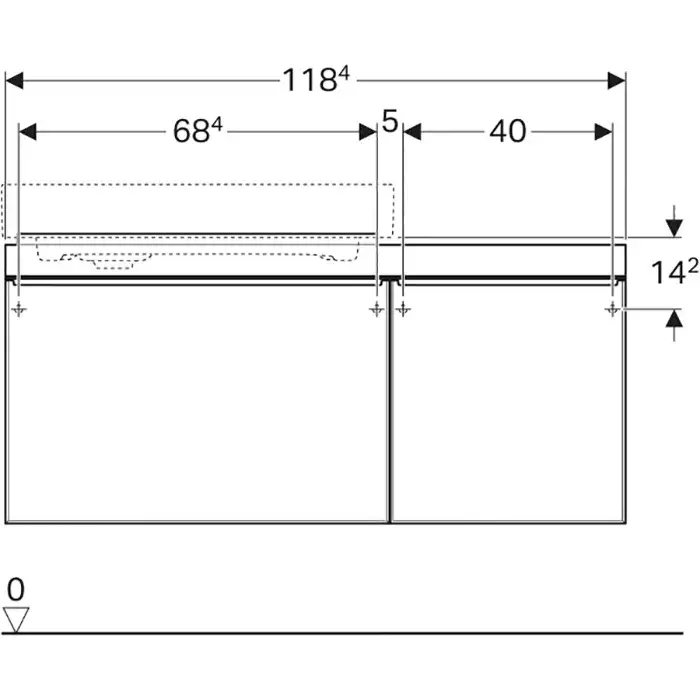 Geberit Citterio Тумба 118,4х54,3х50,4 см, с ящ./полкой, DX, цвет: беж./светл. дуб/мел. 500.562.JI.1