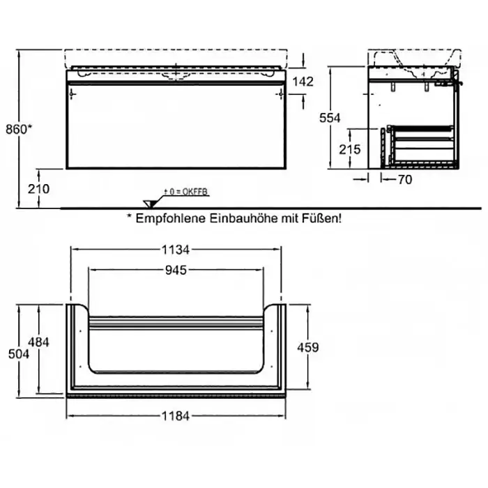 Geberit Citterio Тумба 118,4х55,4х50,4 см, с выдвижным ящ., цвет: беж./светл. дуб/мел. 500.566.JI.1
