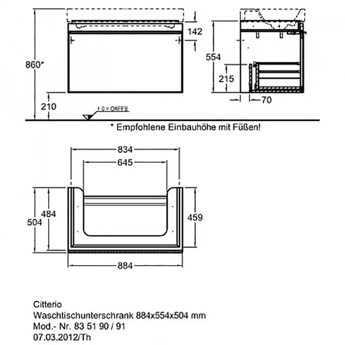 Geberit Citterio Тумба 88,4х55,4х50,4 см, с выдвижным ящ., цвет: беж./светл. дуб/мел. 500.559.JI.1