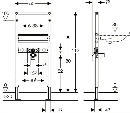 Geberit Duofix Инсталляция для биде, 112 см, универсальная: 50x10см
