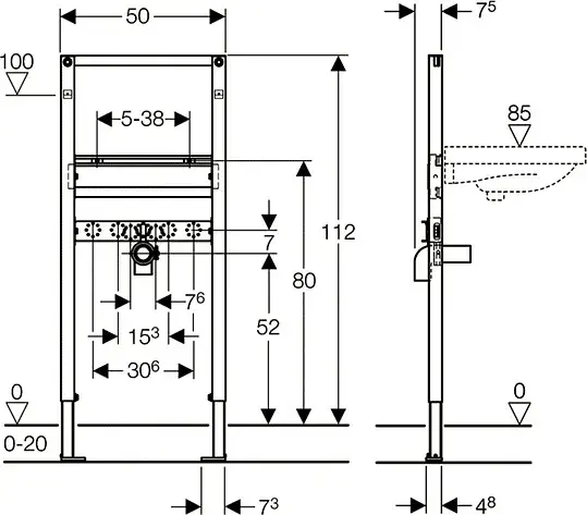 Geberit Duofix Инсталляция для биде, 112 см, универсальная: 50x10см