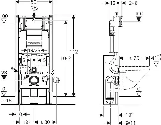 Geberit Duofix Инсталляция для подвесного унитаза, 112 см, Sigma 12 см