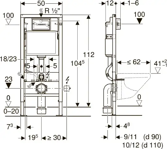 Geberit Duofix Инсталляция для подвесного унитаза, 112 см, Sigma 12 см
