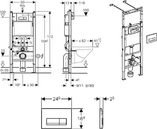 Geberit Duofix Инсталляция для подвесного унитаза, 112 см, Sigma 12 см