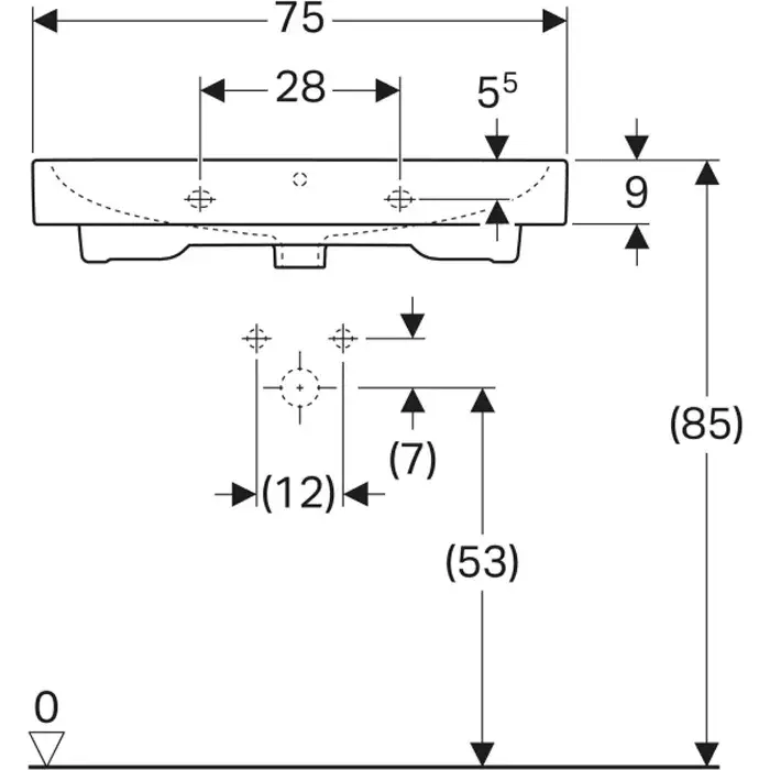 Geberit ICon Раковина 75х48,5 см, без отв., подвесная, цвет: белый 124078000