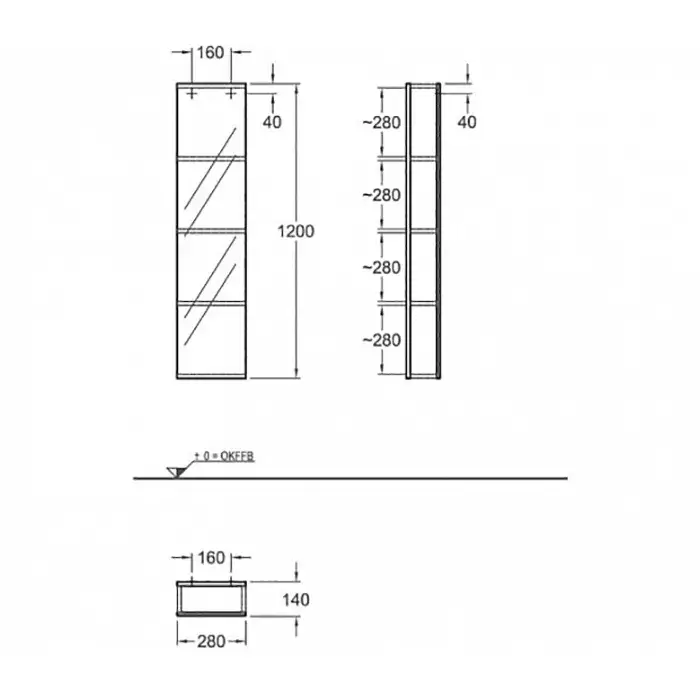 Geberit ICon Стеллаж с зеркалом 28х120х14 см, цвет: цвет: платиновый 840030000