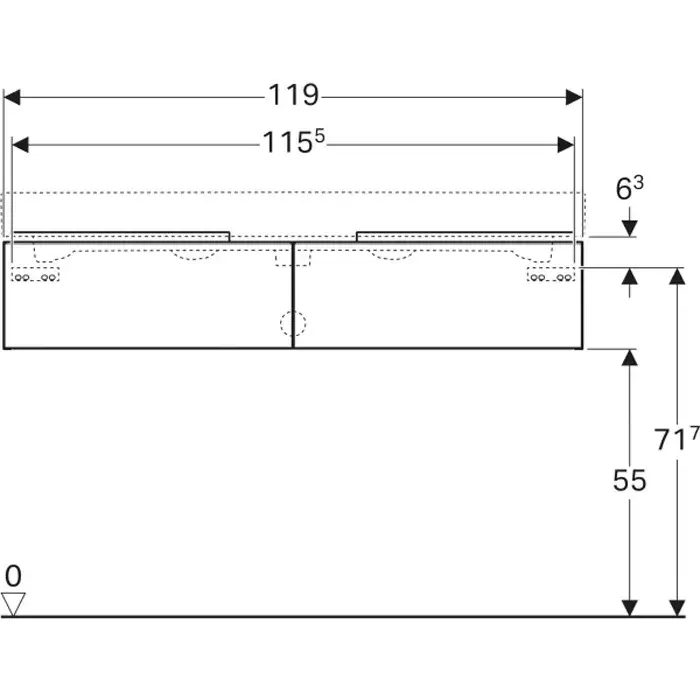 Geberit ICon Тумба 119х24х47,7 см, с двумя выдвижными ящ., цвет: темно-серый/мат. покрытие 841121000