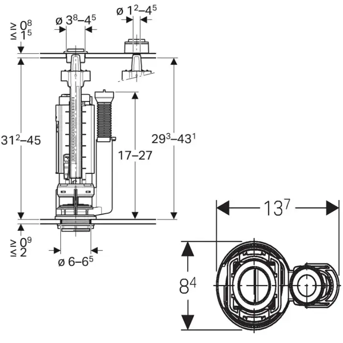 Geberit Механизм смыва для бачка унитаза, двойной смыв, цвет: хром глянцевый 283.313.21.2