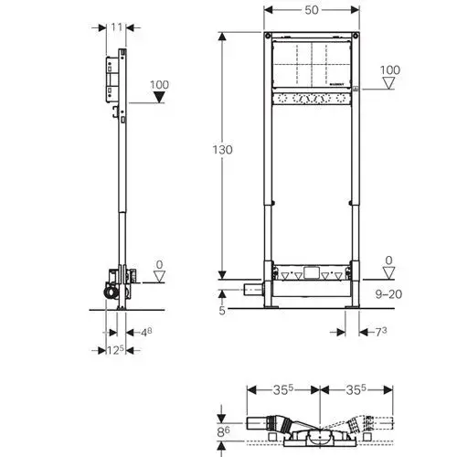 Geberit Монтажный элемент Duofix для душевой системы, 130 см, с водоотвод. в стене, d50 111.580.00.1