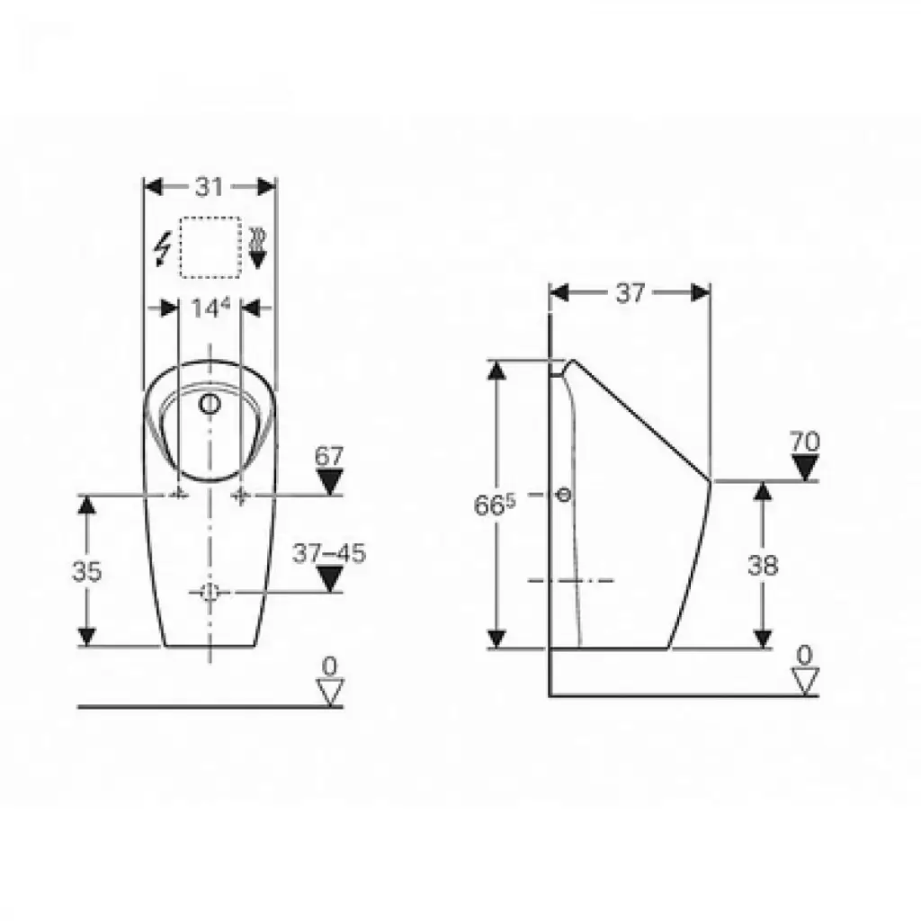 Geberit Preda Писсуар подвесной 31x37x66,5h см, сенсорный, от сети, цвет: белый 116.072.00.1