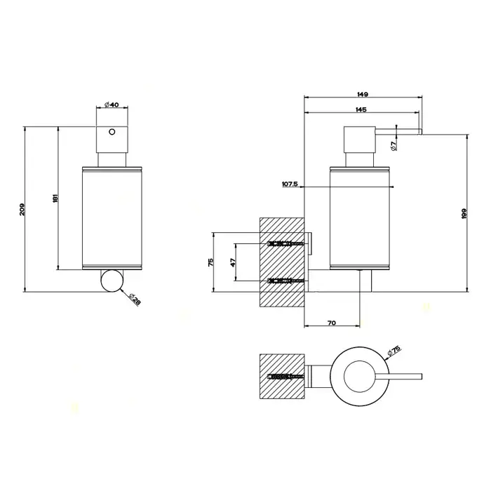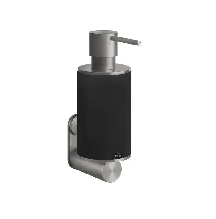 Gessi 316 Accessories Дозатор для жидкого мыла настенный, с черной колбой, цвет: steel brushed 54714#239