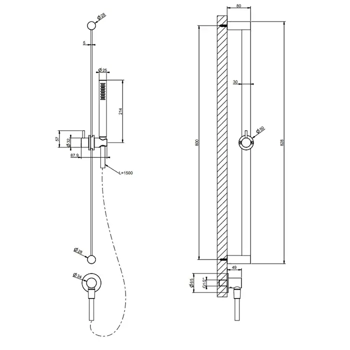 Gessi 316 Bath-Shower Душевой гарнитур: ручной душ,штанга 83 см,шланг, цвет: black metal brushed PVD 54045#707