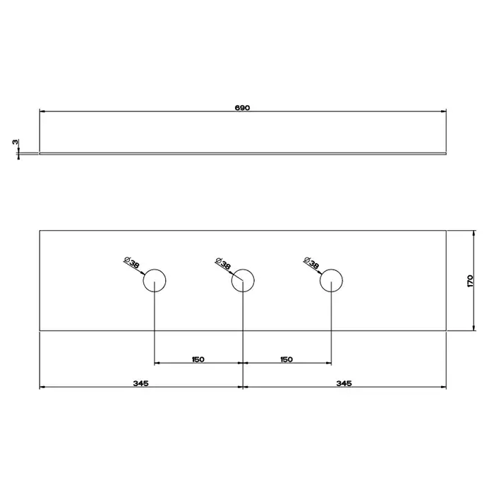 Gessi 316 Bath-Shower Пластина на 3 отв. для бокса, цвет: brushed black metal pvd 54593#707