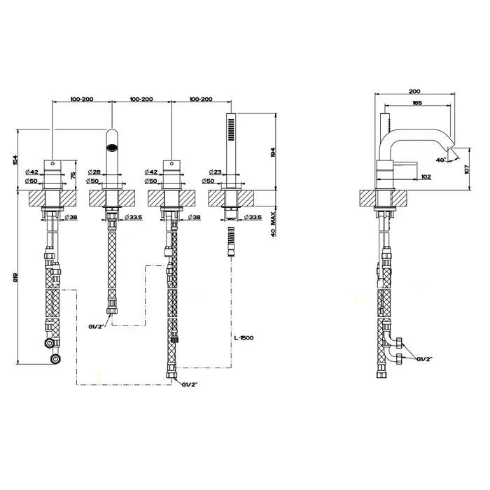 Gessi 316 Bath-Shower Смеситель на борт ванны на 4 отверстия, с ручн. душем, цвет: steel brushed 54037#239