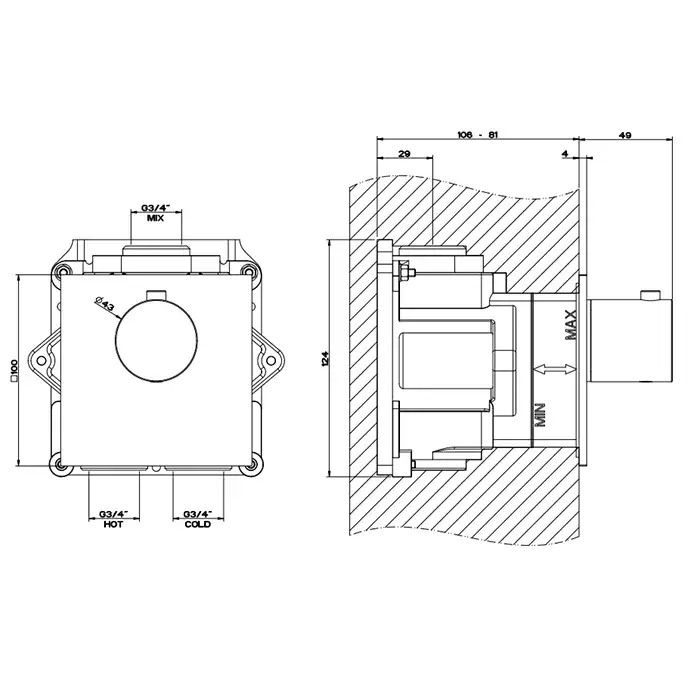 Gessi 316 Bath-Shower Термостат для душа встраиваемый, внешняя часть, цвет: black metal brushed PVD 54554#707