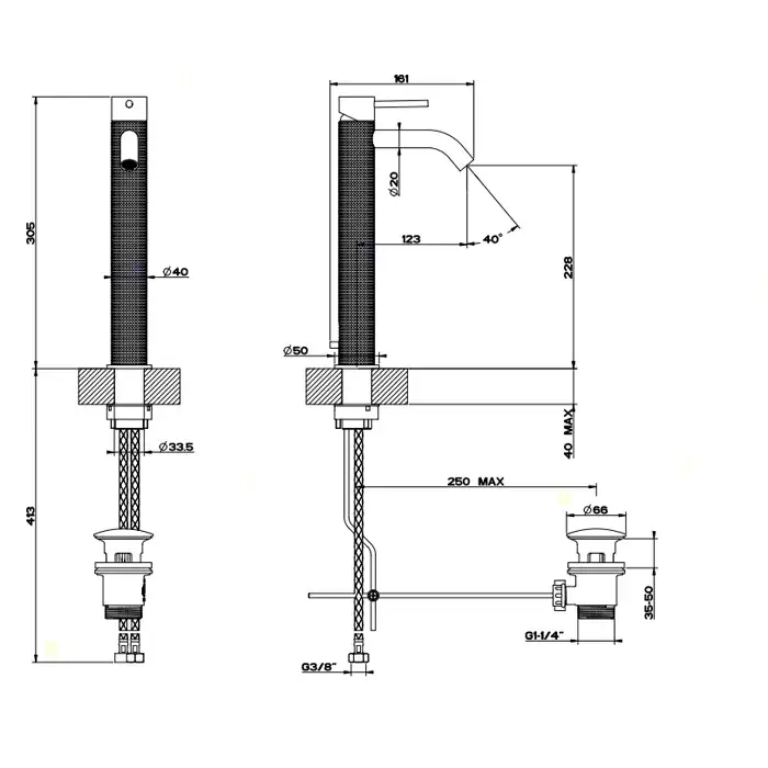 Gessi 316 Cesello Встраиваемый смеситель для раковины, цвет: brushed black metal pvd 54494#707