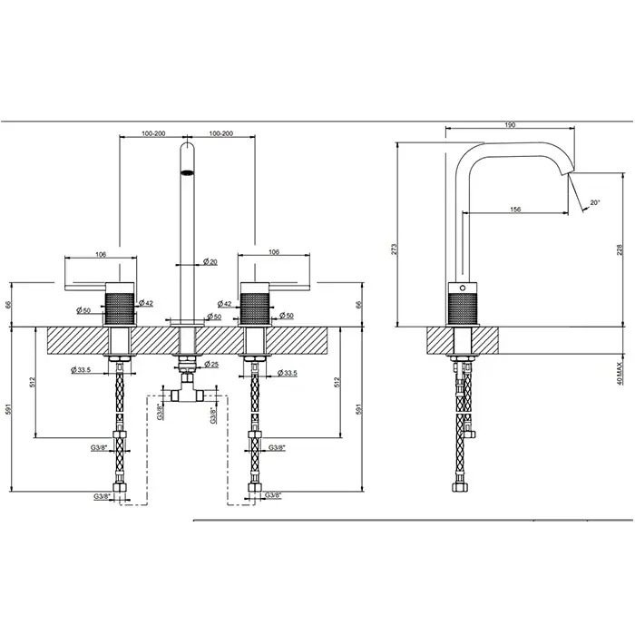 Gessi 316 Cesello Смеситель для раковины на 3 отв., цвет: brushed black metal pvd 54411#707