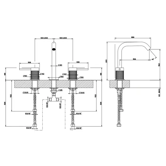 Gessi 316 Cesello Смеситель для раковины на 3 отв., излив 15,6 cм, 20,1h cм, цвет: brushed 54412#239