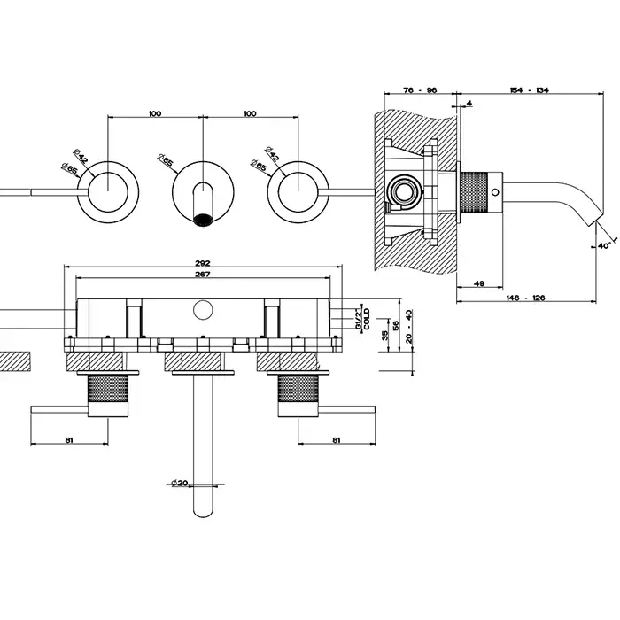 Gessi 316 Cesello Внешние части для смесителя для раковины на 3 отв, цвет: warm bronze brushed PVD 54492#726