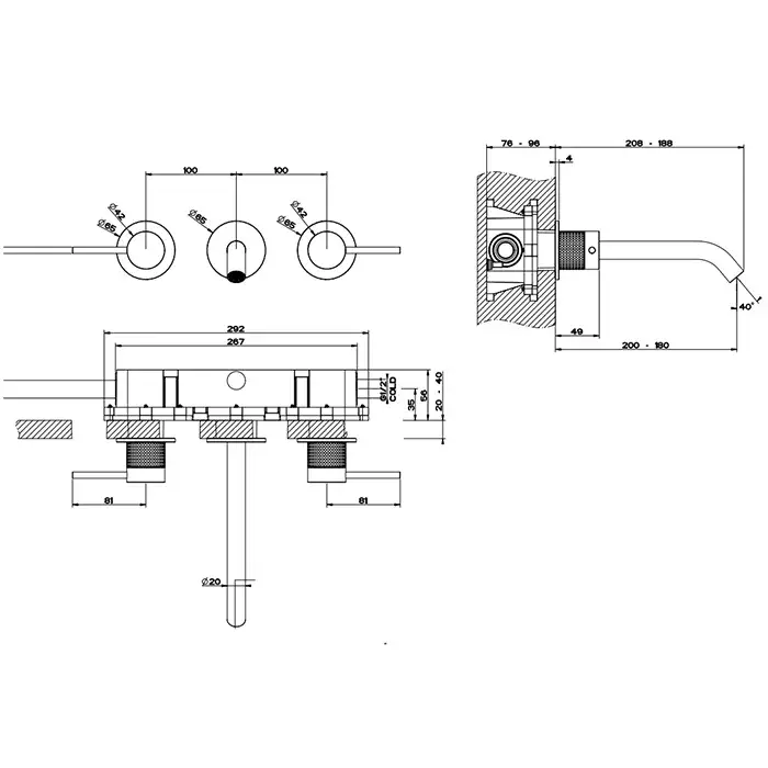 Gessi 316 Cesello Встраиваемый смеситель для раковины, цвет: brushed black metal pvd 54490#707