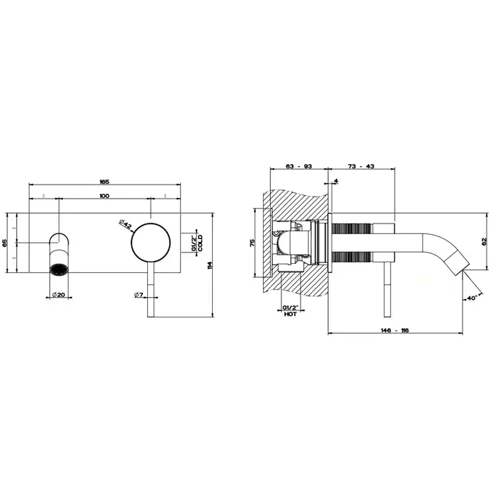 Gessi 316 Cesello Встраиваемый смеситель для раковины, цвет: brushed black metal pvd 54490#707