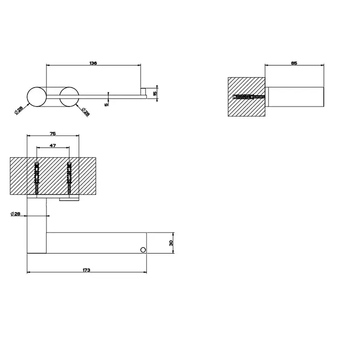 Gessi 316 Смеситель для раковины, настенный монтаж, излив 30см., отделка Meccanica, внешняя часть, цвет: Black XL