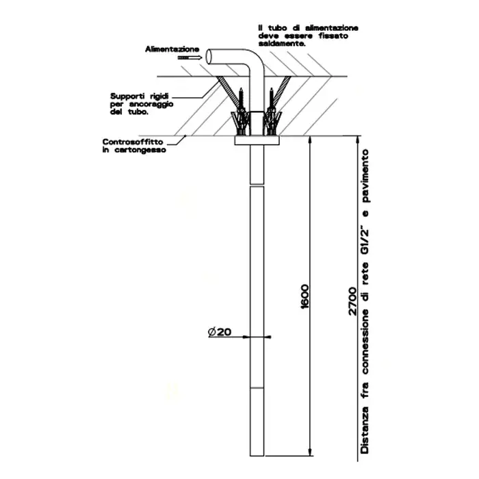 Gessi 316 Flessa Излив потолочный, высота под заказ, цвет: steel brushed 54096#239