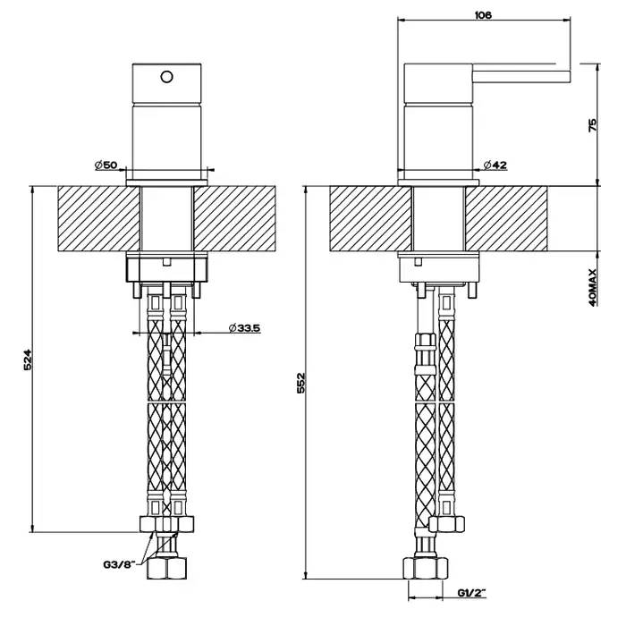 Gessi 316 Flessa Смеситель настольного монтажа для удаленного управления, цвет: steel brushed 54005#239