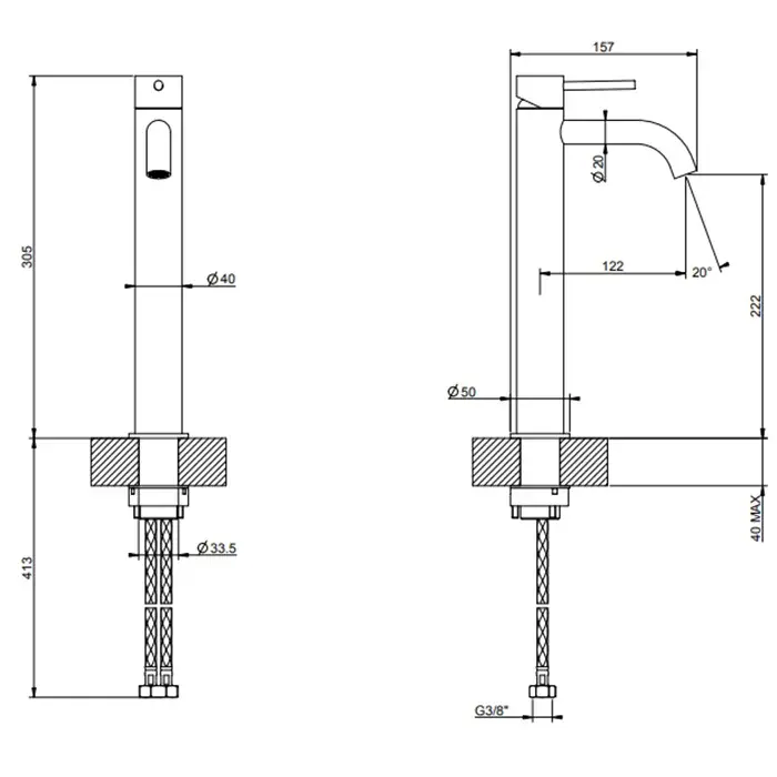 Gessi 316 Flessa Смеситель для раковины высокий, д/к, высота излива 22,2 см, цвет: matte black 54009#299