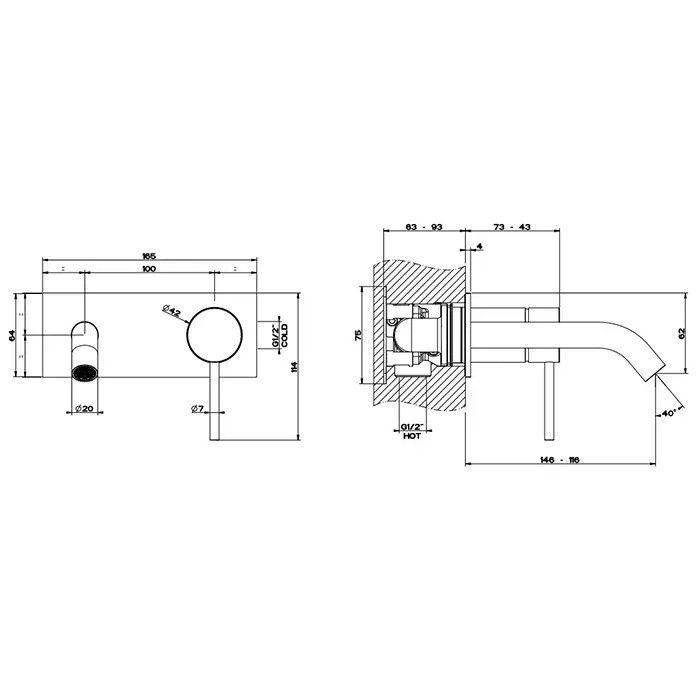 Gessi 316 Flessa Встраиваемый смеситель для раковины с изливом 14,7 cм, цвет: steel brushed 54088#239