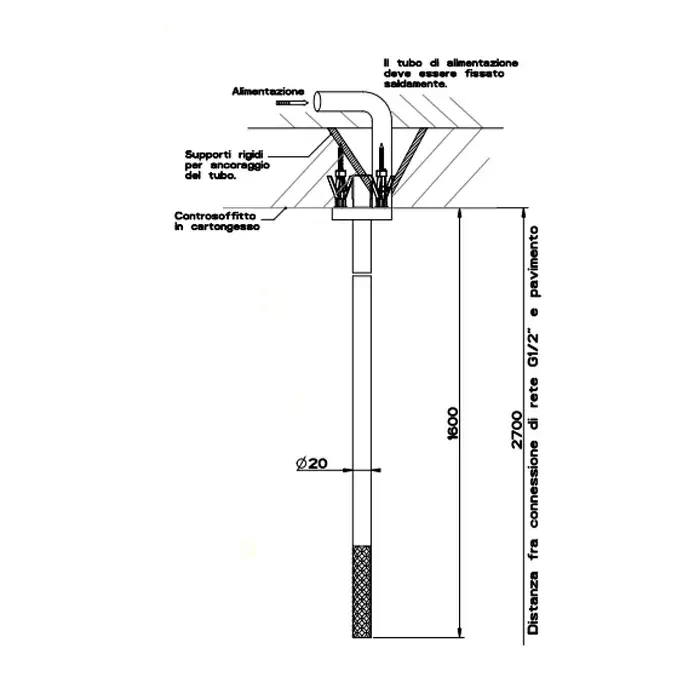 Gessi 316 Intreccio Излив потолочный, высота под заказ, цвет: steel brushed 54196#239