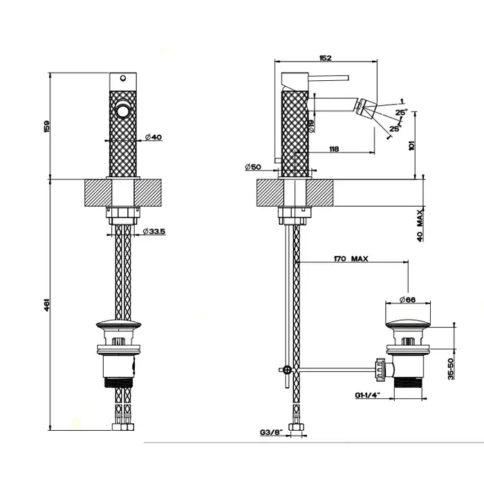 Gessi 316 Intreccio Смеситель для биде, однорычажный, с донным клапаном, цвет: steel brushed 54107#239