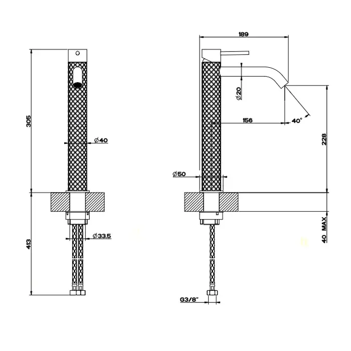 Gessi 316 Intreccio Встраиваемый смеситель для раковины, цвет brushed black metal pvd 54186#707