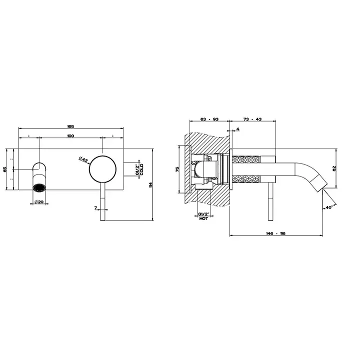 Gessi 316 Intreccio Встраиваемый смеситель для раковины, цвет brushed black metal pvd 54186#707
