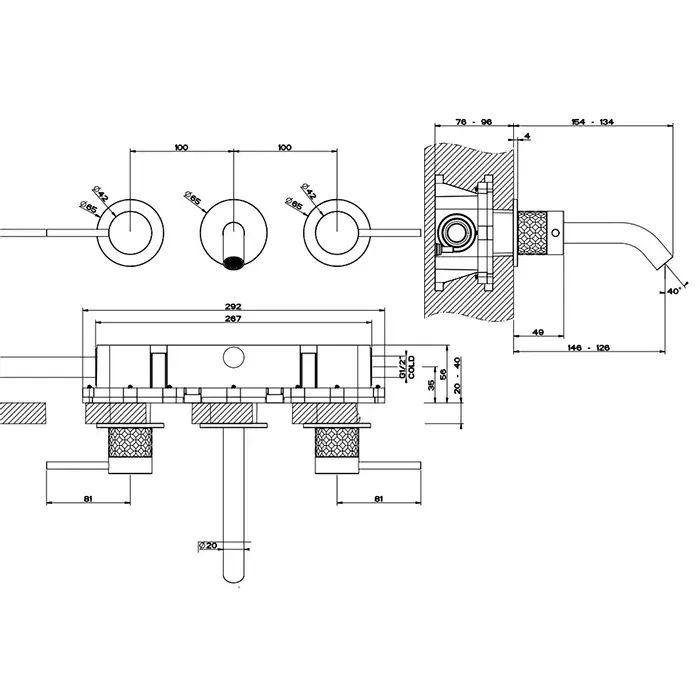 Gessi 316 Intreccio Встраиваемый смеситель для раковины, цвет: brushed black metal pvd 54190#707
