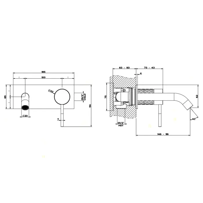 Gessi 316 Intreccio Встраиваемый смеситель для раковины, цвет brushed black metal pvd 54186#707