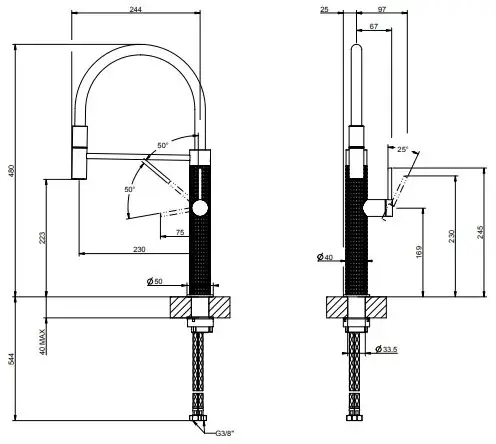 Смеситель для кухни Gessi 316 MECCANICA 60012#707 цвет-Black Metal Brushed PVD