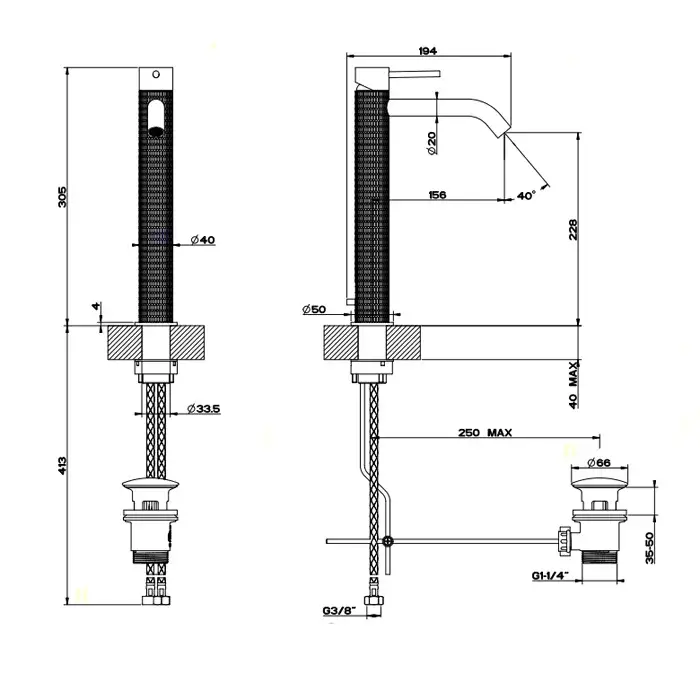 Gessi 316 Meccanica Встраиваемый смеситель для раковины, цвет: brushed black metal pvd 54290#707