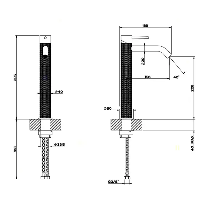 Gessi 316 Meccanica Встраиваемый смеситель для раковины с изливом, цвет: steel brushed 54294#239