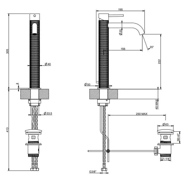 Gessi 316 Meccanica Встраиваемый смеситель для раковины, цвет: brushed black metal pvd 54290#707