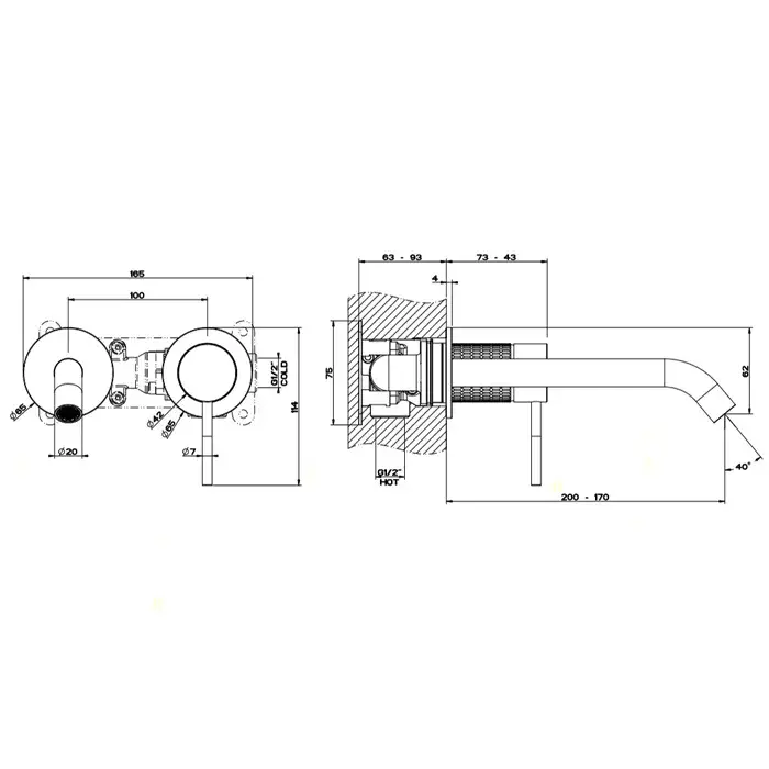 Gessi 316 Meccanica Встраиваемый смеситель для раковины, цвет: brushed black metal pvd 54290#707