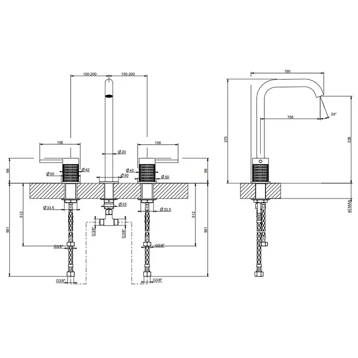 Gessi 316 Смеситель для раковины без донного клапана двухвент., цвет: black metal brushed PVD 54211#707