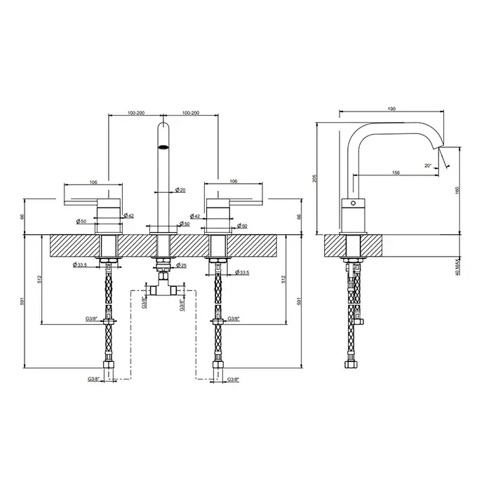 Gessi 316 Смеситель для раковины без донного клапана двухвентильный, цвет: matte black 54012#299