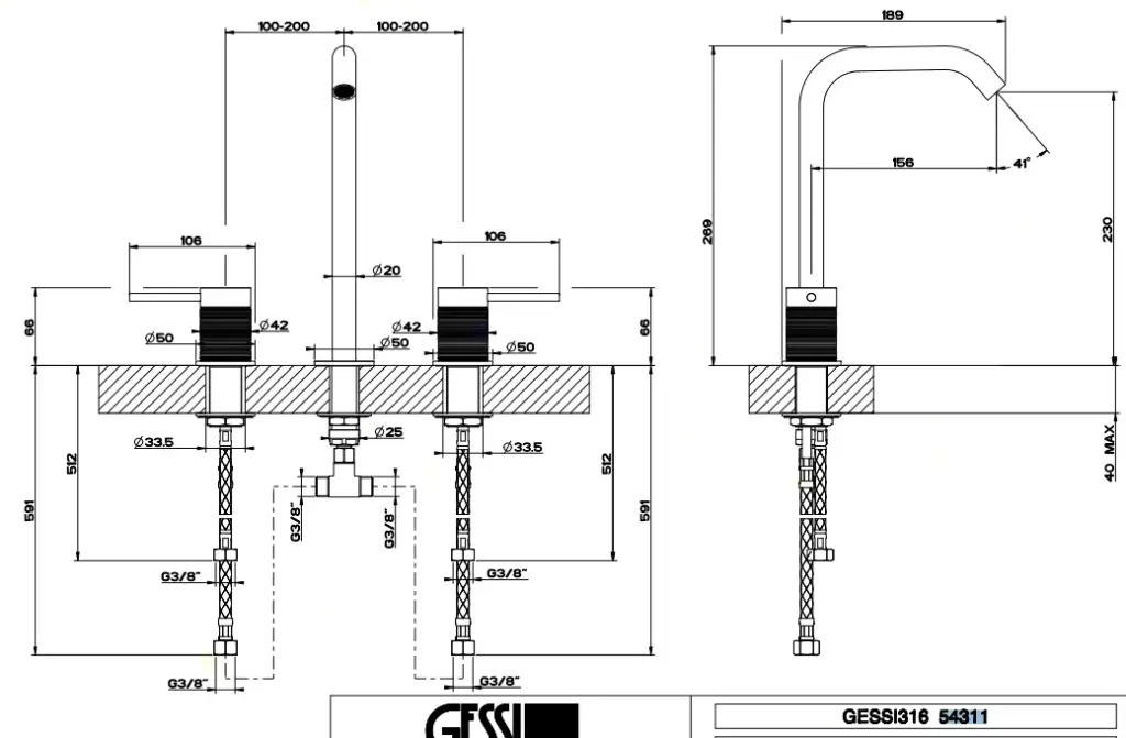 Gessi 316 Смеситель для раковины без донного клапана двухвентильный, цвет: steel brushed 54311#239