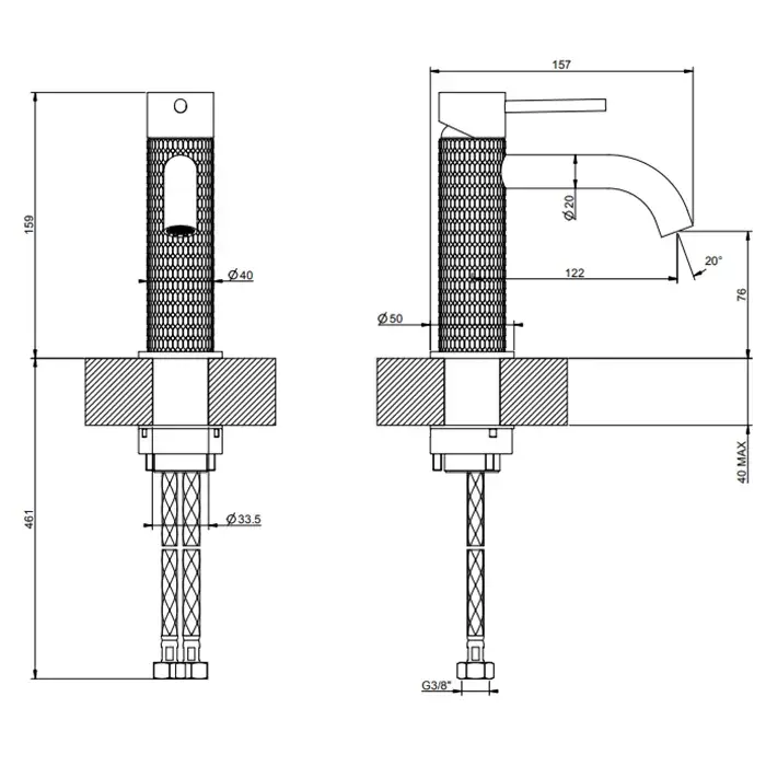 Gessi 316 Смеситель для раковины без донного клапана однорыч., цвет: black metal brushed PVD 54202#707