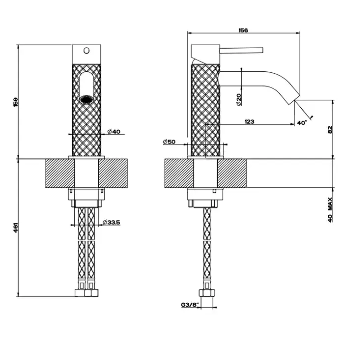 Gessi 316 Смеситель для раковины без донного клапана однорыч., цвет: black metal brushed PVD 54102#707
