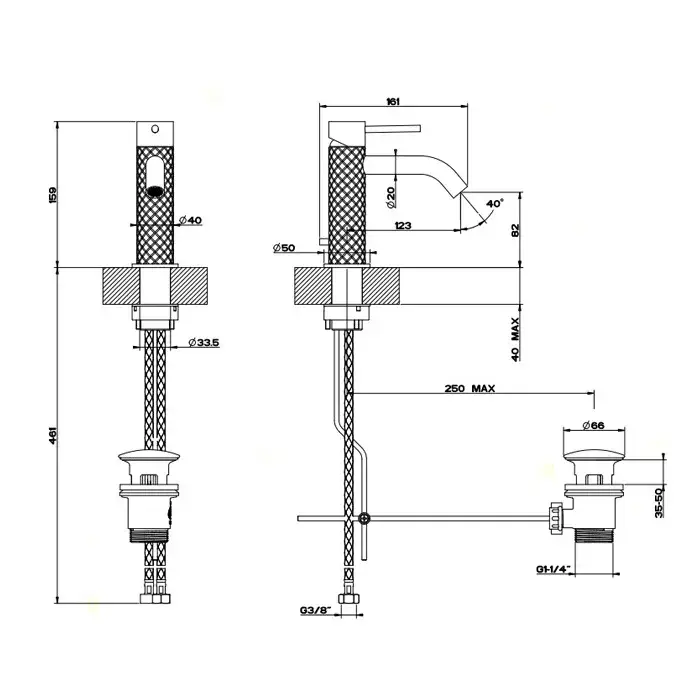 Gessi 316 Смеситель для раковины, настенный монтаж, излив 30см., отделка Meccanica, внешняя часть, цвет: Black XL