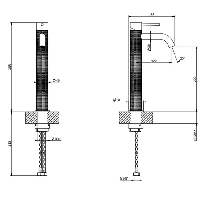 Gessi 316 Смеситель для раковины высокий без дон. клап. однорыч., цвет: black metal brushed PVD 54409#707
